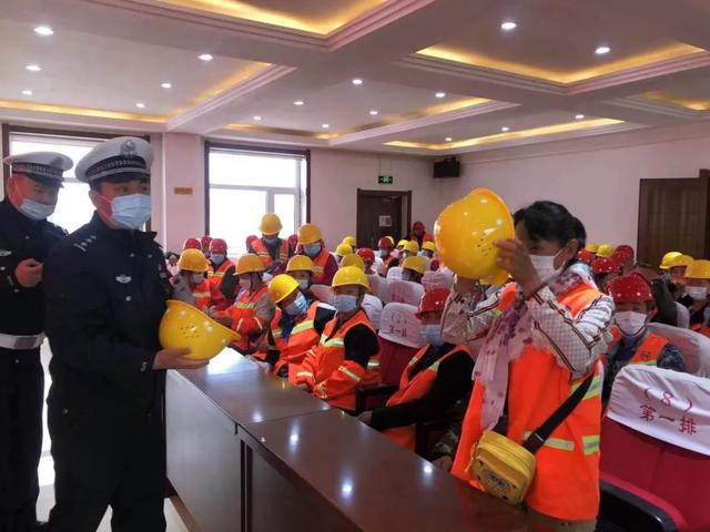 培训会上,宣教民警现场为参加活动的50余名环卫工人发放了由爱心企业赠送的安全头盔,并示范了安全头盔的